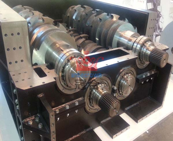 1.雙軸破碎機具有低速、大扭矩、低噪聲等特點。采用PLC控制系統(tǒng),可自動控制。具有啟動、停止、倒車和過載自動倒車控制功能。